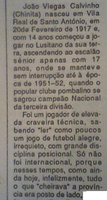 Faro na década de 60,José Bento era um jogador