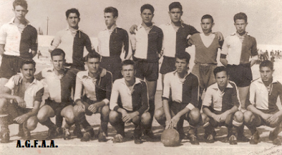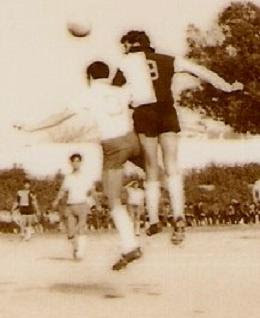 | José Bento (nº9) em acção no Campo Rossio da Trindade,em Lagos, contra o Esperança em meados dos anos 60 |