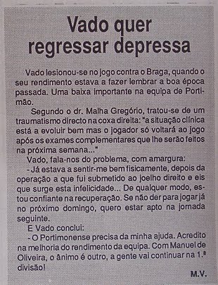 | Recorte de 1991 quando Vado se transfere para o Marítimo |