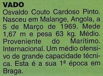 | Recorte de 1995 quando Vado chega ao Sporting de Braga |