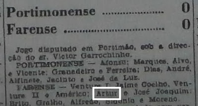 | Artur titular no Farense em 1952/1953 |