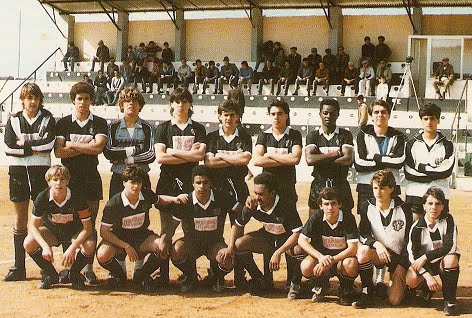 | Beto,o 3º em cima,da esquerda,nos juniores do Silves, onde foi Campeão Distrital em 84/85 e participou no Campeonato Nacional do escalão na época seguinte |