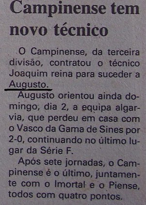 81/82. Em 83/84 ajudou o clube a subir á 2ª Divisão.